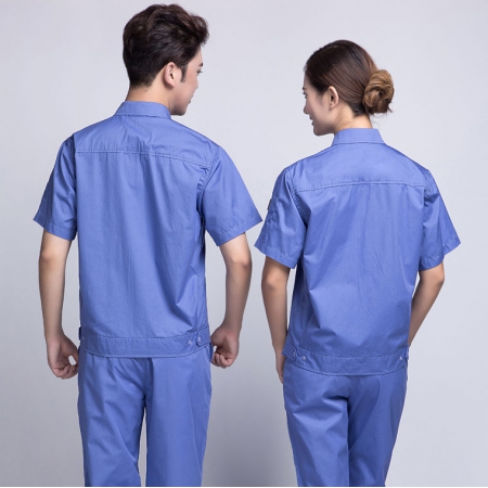 苏州鹰诺服装:深蓝配桔红短袖工作服AD069