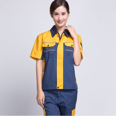 苏州鹰诺服装:藏青拼大红夏季工作服AD103