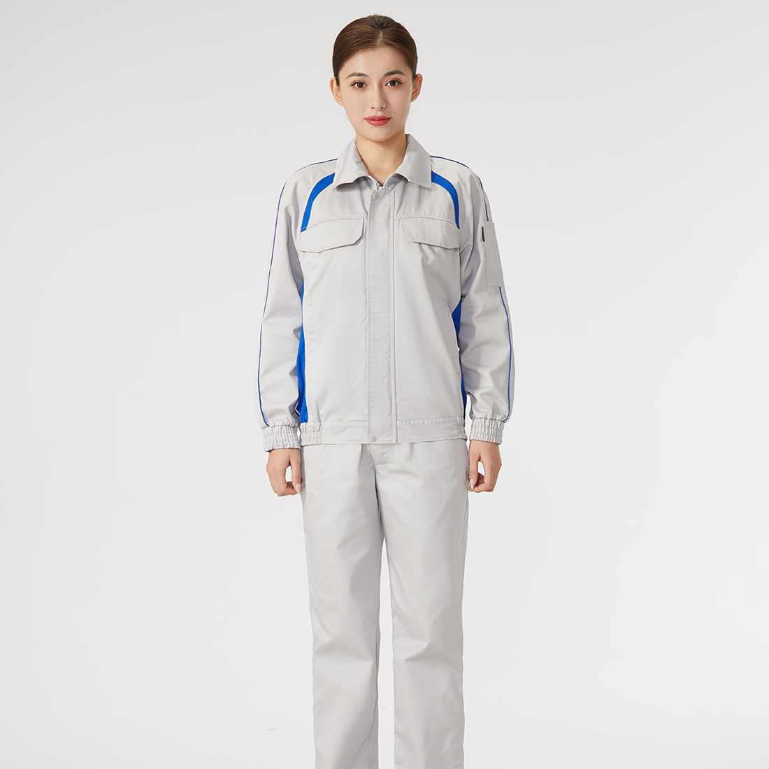 艳蓝配浅灰工作服AC072