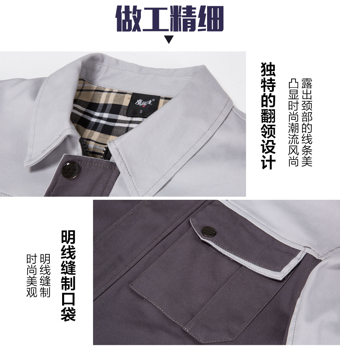 苏州鹰诺服装:米灰拼铁灰工作服AC14-3