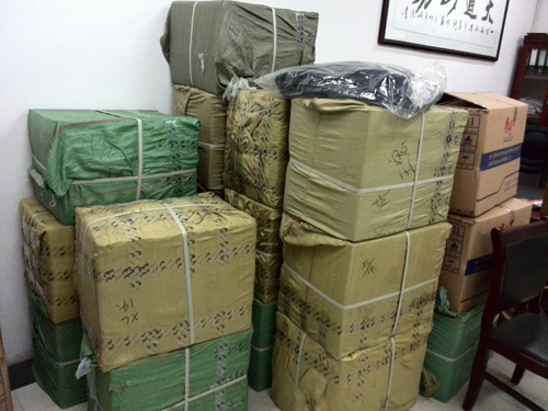 每日仓库都用满满的一堆打好包的箱子等待发货: