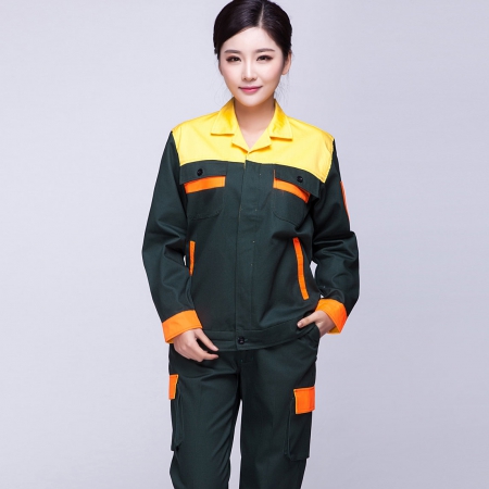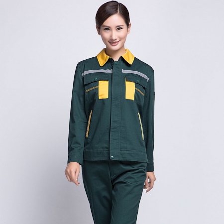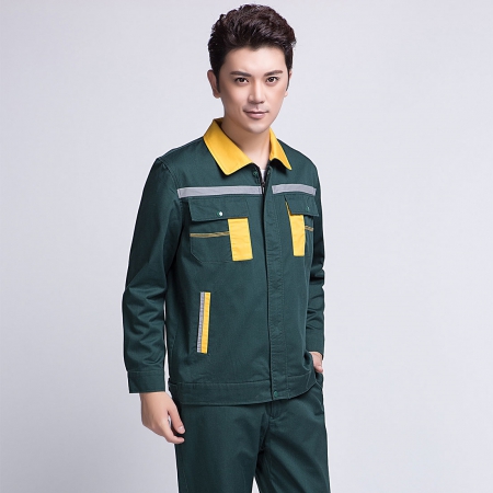 墨绿拼黄色汽修工作服