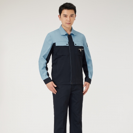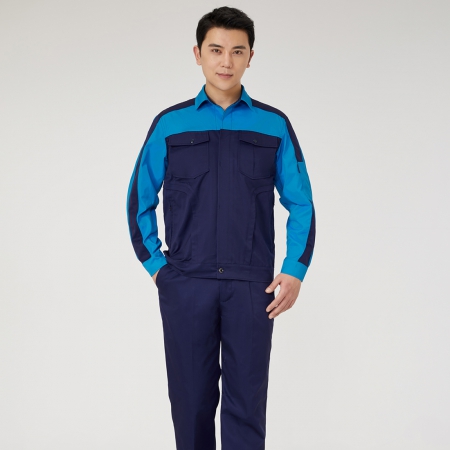 浅灰拼艳蓝色工作服AC2204-4