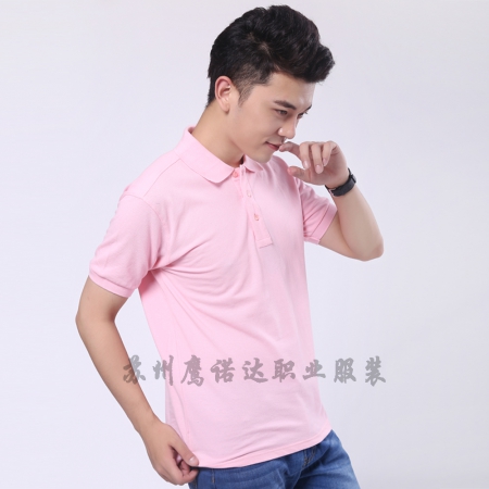 苏州鹰诺服装:粉红修身超高支纱纯棉短袖T恤工作服 ID262-TX
