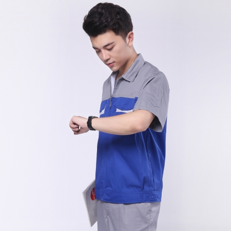 卡其拼藏青涤棉纱卡春秋工衣AC109
