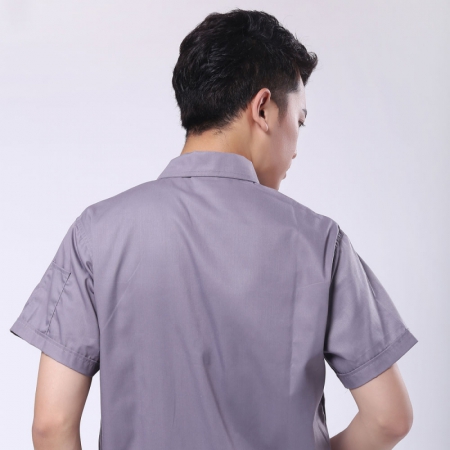 苏州鹰诺服装:浅灰拼绿色全棉工作服AC121-CQ