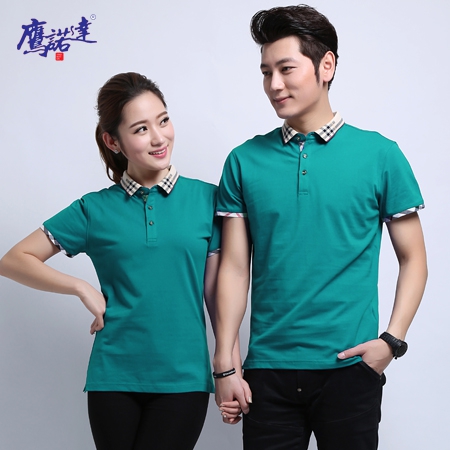 苏州鹰诺服装:果绿电脑提花领天麻纤维棉广告衫ID6122-7