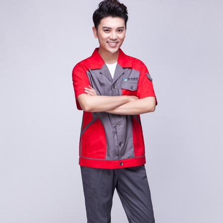 苏州鹰诺服装:藏青拼大红夏季工作服AD103