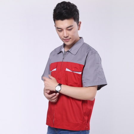 苏州鹰诺服装:藏青拼大红夏季工作服AD103