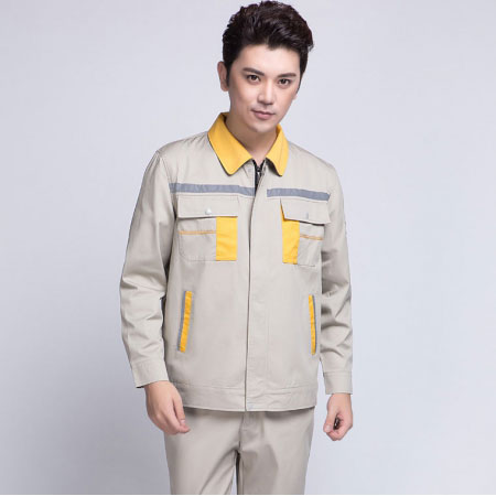 苏州鹰诺服装:米色拼黄色秋季工作服AC09-1