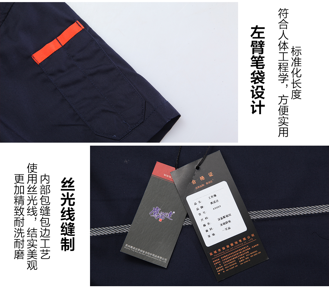 深蓝配桔红夏季工服AD069