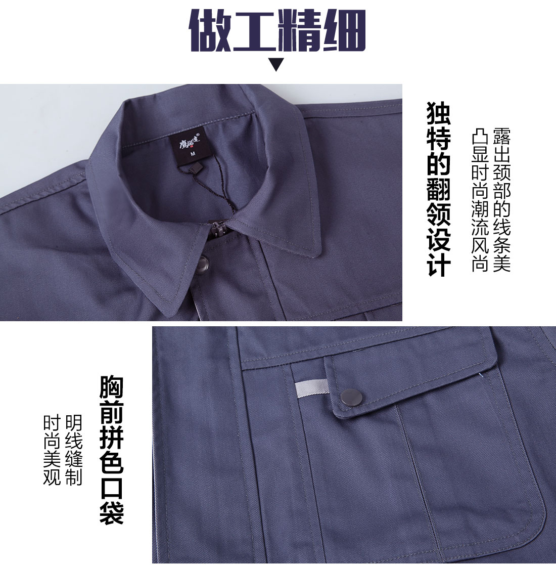 - 游客于 2017-08-28 08:48:19 发表苏州鹰诺服装:深灰配浅灰涤棉纱卡电工工作服AC077