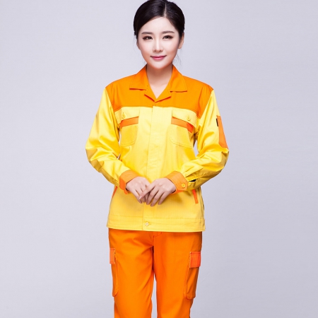 苏州鹰诺服装:黄色拼橘黄春秋工作服AC03-4