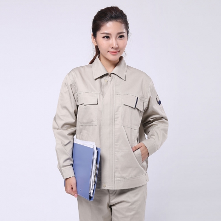苏州鹰诺服装: 米灰拼驼色工作服AC14-1