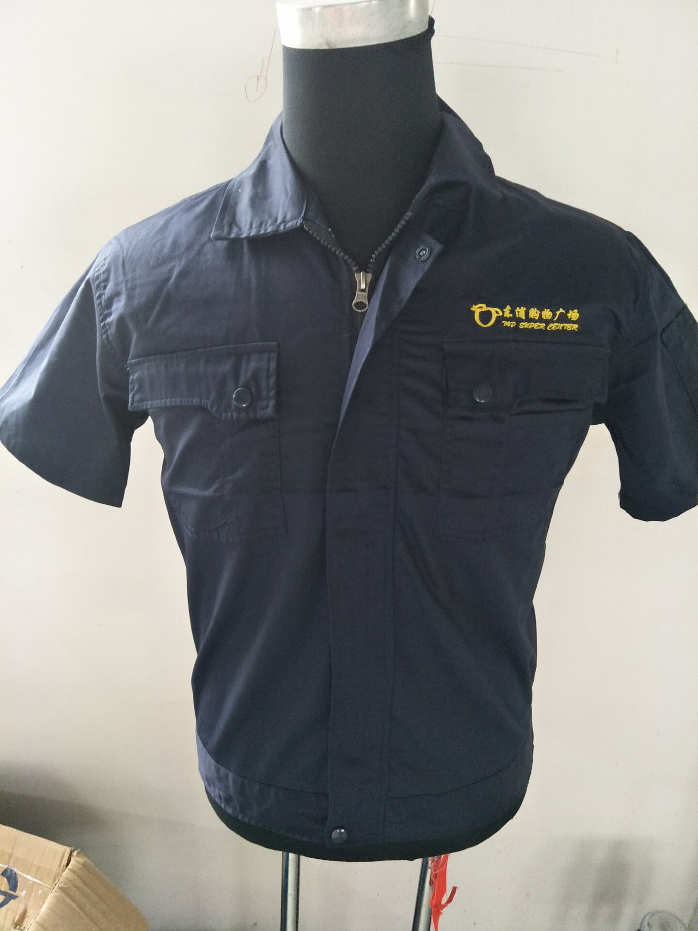 东浦购物广场的莫经理是此次工作服定制的负责人,值此超市购物广场店庆之际,莫经理想要定做超市工作服,夏季短袖的,之前没有做过,现在想要找到一个靠谱的厂家定做超市店庆工作服,想要纯色,初步看中的是鹰诺达AD070的款式的,在左胸刺绣上公司的LOGO,后背也印刷上LOGO。