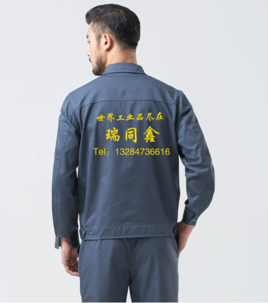 这次我们推荐的是高级灰的工作服,颜色很显大方,是市面上极少出现的灰色。因为是机电城上班,人员流量比较大,所以后背要加LOGO和电话以便起到宣传的作用。