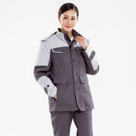 苏州鹰诺服装:冬季工作服上衣新款铁灰拼清灰MF20-3