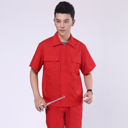 苏州鹰诺服装:大红涤棉细斜纹防静电服AD091-JD