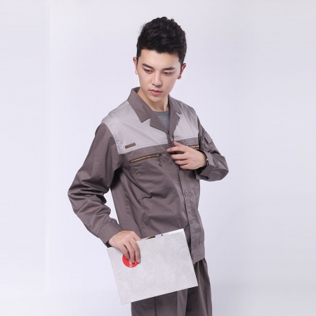苏州鹰诺服装:中灰拼橘黄色春秋工作服AC116-CQ