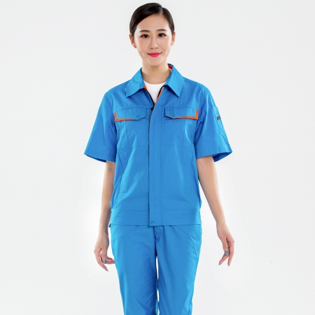苏州鹰诺服装:蓝色拼橙色夏季工作服AD13-4-XJ