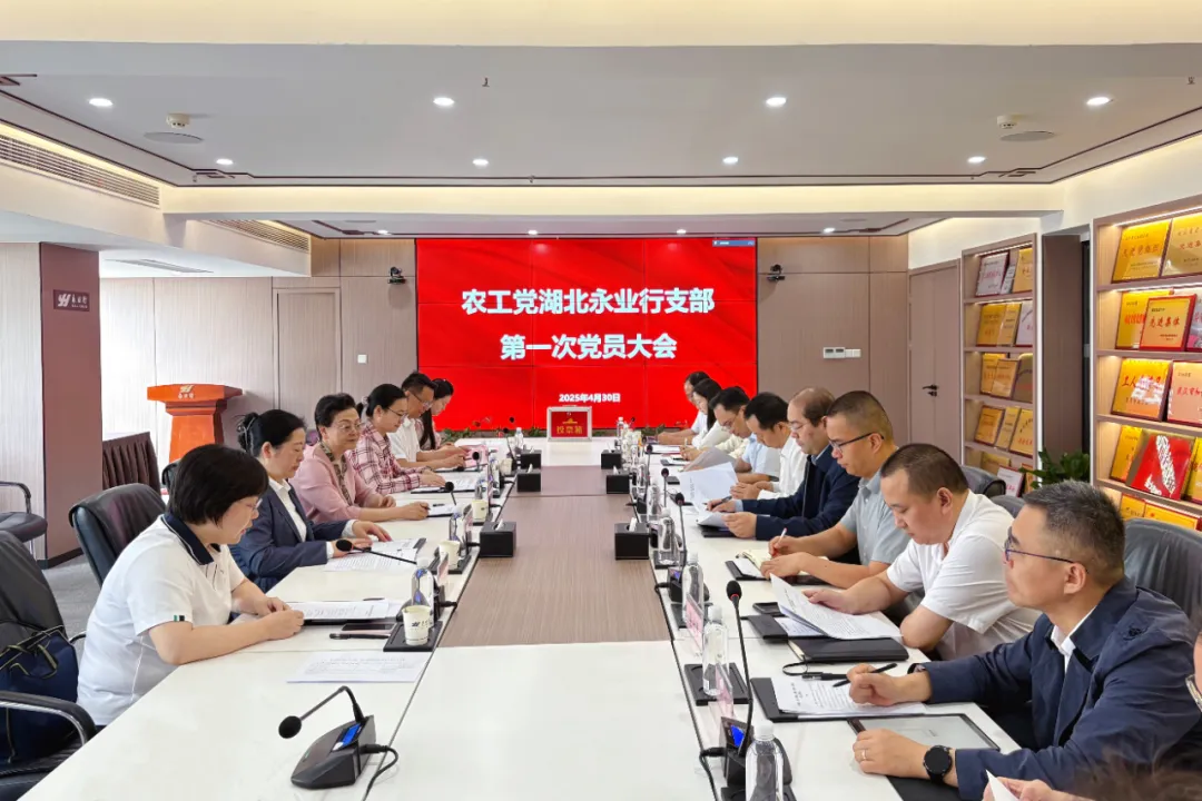 2025年4月30日,农工党湖北永业行支部第一次党员大会在永业行举行。湖北省政协常委、副秘书长、农工党湖北省委会专职副主委黄惠宁,农工党湖北省委会组织部部长宋亚琼到会指导,会议由农工党湖北省委会组织部副部长刘弥主持。永业行党委书记、董事长潘世炳出席会议并致辞,永业行党委委员、常务副总裁吴学锋参加会议。 会上,宋亚琼作《农工党湖北省委会关于组建农工党湖北永业行支部委员会的说明》,并宣读《关于成立中国农工民主党湖北永业行支部的决定》。随后,会议严格遵循《中国农工民主党章程》规定程序,选举产生农工党湖北永业行第一届支部委员会,农工党党员、永业行助