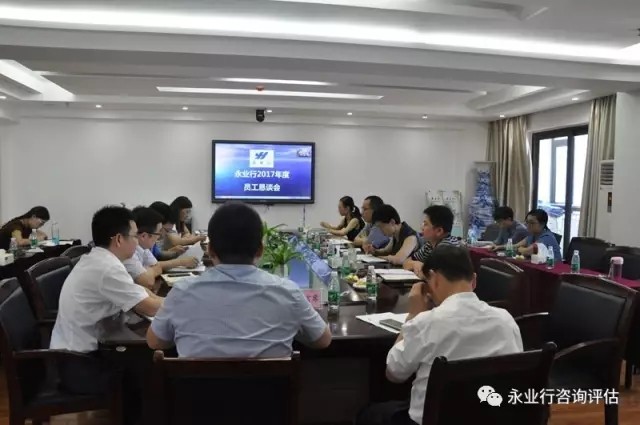 2017年7月21日上午,永业行2017年度员工恳谈会在总部召开。董事长方国成、总裁潘世炳、副总裁靳剑辉、副总裁王琴、助理总裁雷小军、咨询业务副总监文云波、国土业务副总监吴学锋、运营副总监肖莉、各服务部门负责人和来自23个部门的共31名员工代表参加了恳谈会。 部分员工代表 省内外分部员工远程视频参会 会议由助理总裁雷小军主持。会上,各部门员工代表畅所欲言、各抒己见,就新业务发展方向、市场开拓方式、技术水平提升、技术管理优化、集团品牌打造、信息化建设、人事薪酬管理、财务报销流程等方面提出意见与建议。其中,不乏有极具建设性意见和公司未来发展的战略参考的建议