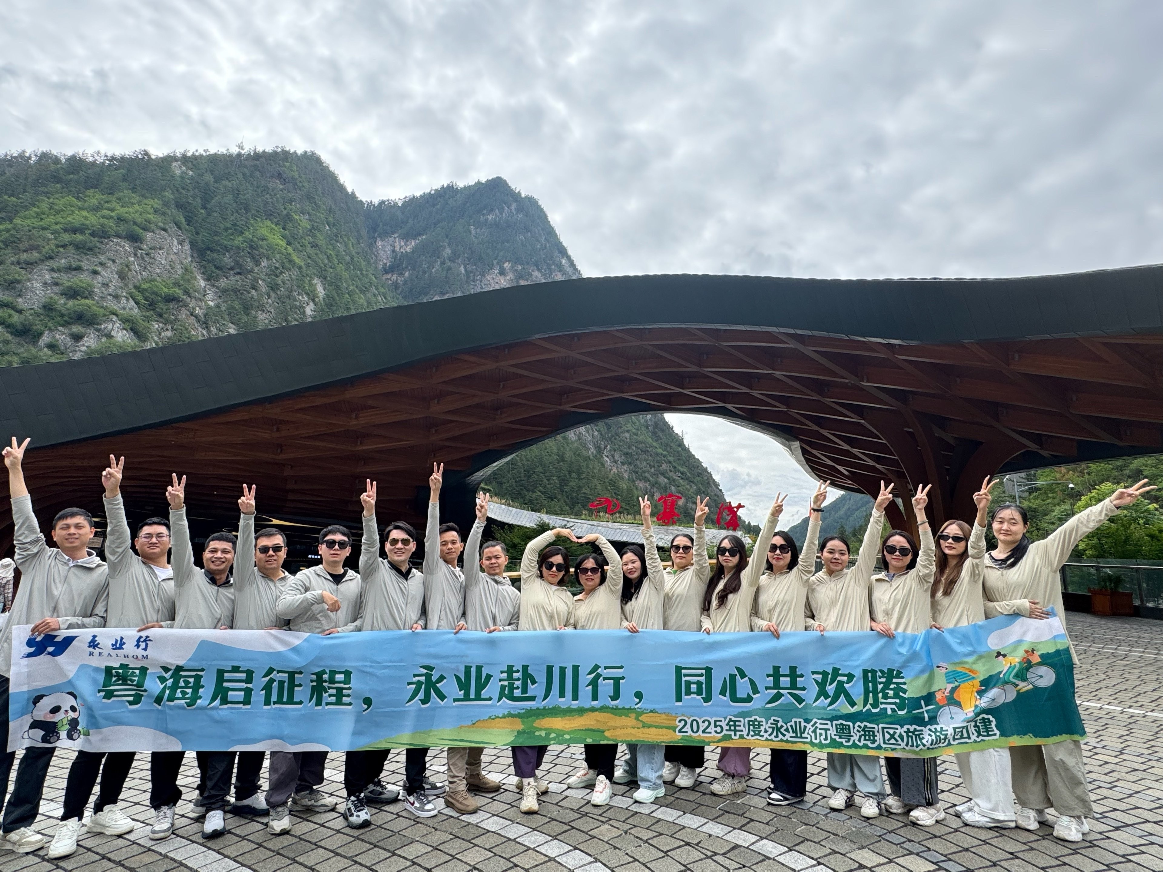 抛下都市的喧嚣,跃入川蜀的山海长卷; 把地图上的炽热标记, 踏成蜿蜒身后的足迹。 与其静待风至,不如化身追风者, 在蜀地风光里, 镌刻专属粤海团队的“快乐勋章”! 夏日炎炎,恰是消暑佳时。近日,永业行粤海区20名员工及家属在总经理周攀的带领下,以“粤海启征程,永业赴川行,同心共欢腾”为主题,踏上了一场兼具文化深度与团队温度的川蜀之旅。 01 探秘古蜀文明,邂逅千年传奇 走进三星堆博物馆,神秘的青铜面具、造型奇异的古蜀文物瞬间抓住了大家的目光。那些沉睡千年的器物,仿佛跨越时空,诉说