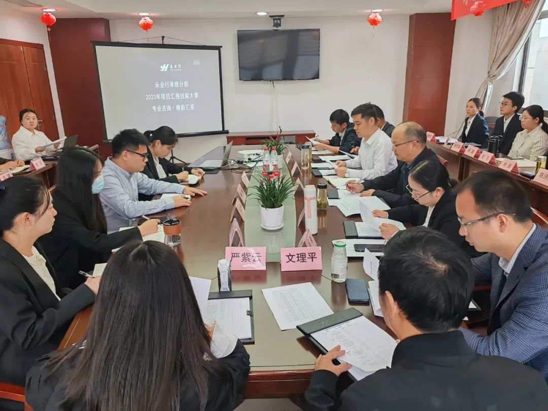 为加强团队建设,提升员工汇报表达能力,培养复合型人才,2023年10月13日,孝感分部以“专业咨询·精彩汇报”为主题举行2023年项目汇报技能大赛,26名选手同台竞技。孝感分部执行董事张立胜、总经理梁小虎及分部全体员工参加此次活动。 比赛采用演讲结合PPT演示形式开展,选定分部正在开展的主营业务、市场技术培训以及读书分享三个方面进行汇报交流。竞赛题目包括2023年汉川市园林草定级项目专家评分、S109孝感至汉川公路新建工程(孝南段)节约集约用地论证分析专章、水土保持业务推广及技术培训、《战胜拖延症》读书分享等,既展示了分部