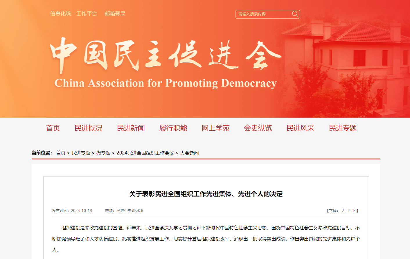 永业行金建华获“民进全国组织工作先进个人”荣誉称号