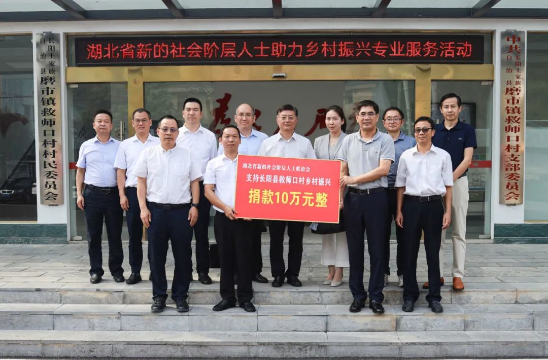 2023年9月19日,湖北省委统战部副部长李涛率省新联会会长、副会长等一行,来到宜昌市长阳县磨市镇救师口村,参加乡村振兴专业服务活动。省新联会副会长、省政协常委、永业行董事长潘世炳参加活动。 活动由宜昌市委统战部副部长王云洋主持,省新联会会长石文先代表省新联会和参会捐款代表,给救师口村捐赠乡村振兴款项10万元。在座谈会上,长阳县委常委、县委统战部部长李德兵报告了长阳县乡村振兴等工作,省委统战部驻村工作队报告了驻村帮扶情况,参会的省新的社会阶层代表人士石文先、李刚、易坤山、潘世炳、熊华敏等,分别就本次乡村振兴活动进行了交流,提出了下一步工作的意见和建议。在座