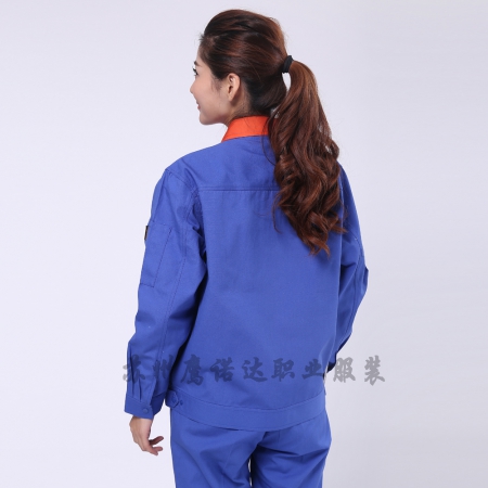 苏州鹰诺服装:深蓝配桔红春秋工作服AC069