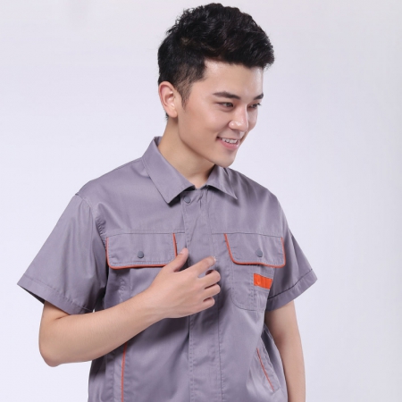 苏州鹰诺服装:浅灰拼绿色全棉工作服AC121-CQ