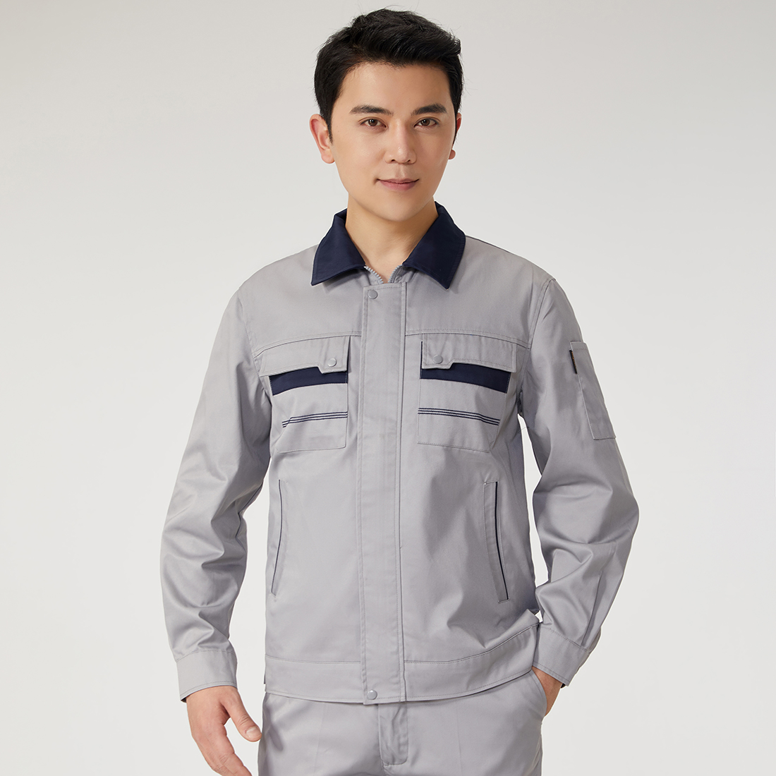 灰色拼藏青夏季工作服AD089