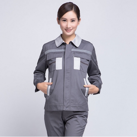 苏州鹰诺服装:浅灰拼中灰全棉秋季工作服AC06-1