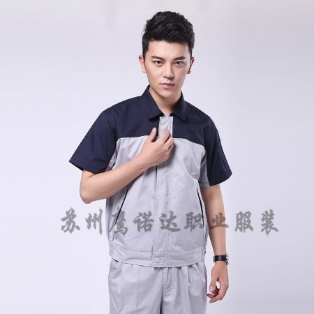 苏州鹰诺服装:湖蓝拼浅灰工作服AC20-2