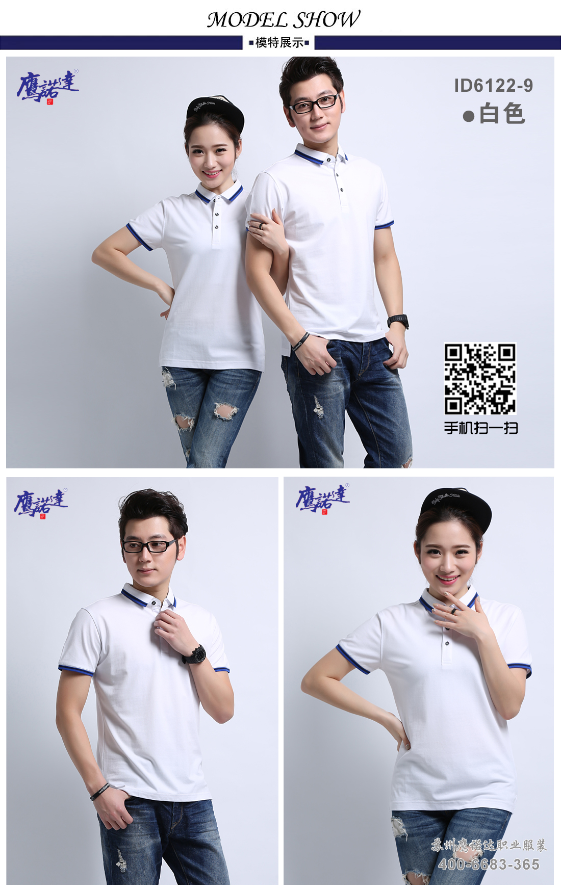 苏州鹰诺服装:丝光棉修身t恤衫工作服 ID264