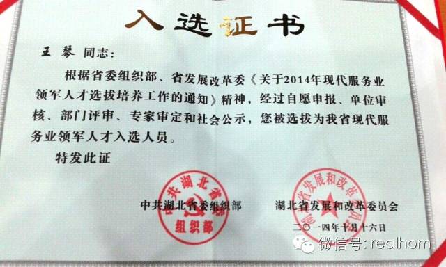 近日,王琴入选“湖北省第二期现代服务业领军人才”