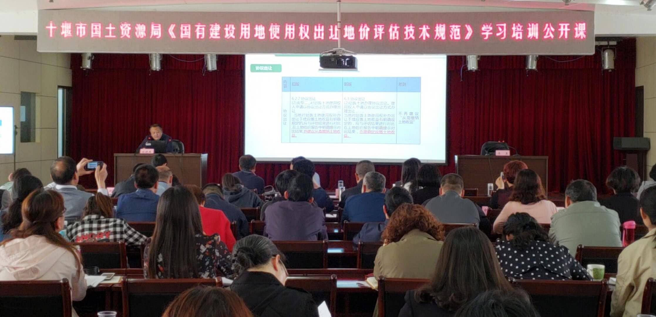 2018年4月26日上午,十堰市国土资源局举办了《国有建设用地使用权出让地价评估技术规范》学习培训公开课,以普及新评估规范技术知识,推动新旧评估规范顺利过渡、评估新政策落地,促进房地产市场平稳发展。十堰市、县国土资源局有关领导、相关科(股)及地价监测机构管理人员,登记或备案的土地评估机构 、相关房地产企业代表等近200人参加培训。湖北省土地估价与登记代理协会副会长、永业行副总裁刘晓峰应邀作专题培训。