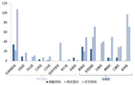 图:2018年武汉市各区经营性用地(住宅、商业、商住)供应量