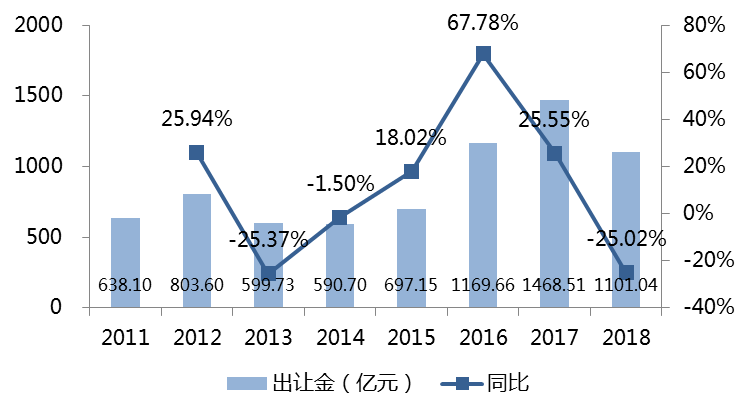 1. 2018年武汉市土地出让金总量出现近4年的首次下跌
