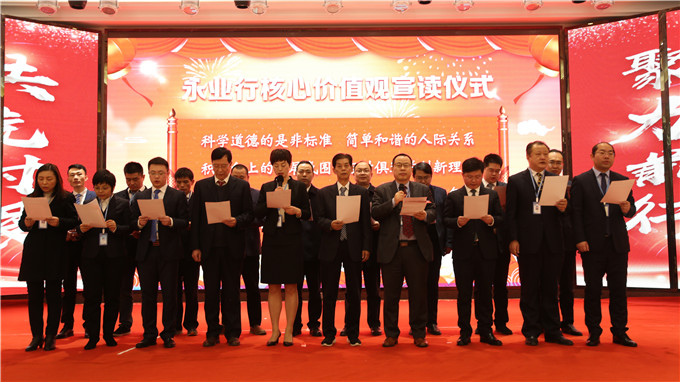 会上,全体与会人员集体宣读了永业行核心价值观,并进行了工作作风宣誓。誓词铿锵有力、掷地有声,昭示着全体永业行人敢于担当、勇于创新、廉洁从业的坚定信心与决心。
