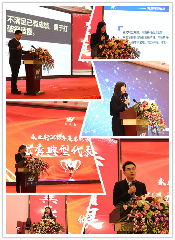 会上,10名标兵、36名先进工作者、19名技术优胜、20名市场优胜、16名优秀新人、13名品牌推广优胜、5名先进财务工作者,以及技术优胜、市场优胜、创新优胜、最佳培训等4个优胜部门获得表彰。先进代表雷小明、刘亚玲、顾文君、王阿燕、李杨阳、徐玲分别在会上做了优秀典型发言。
