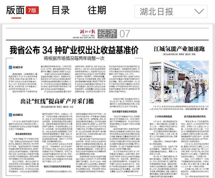 3月27日,湖北日报对省自然资源厅牵头,永业行承担的矿业权出让收益市场基准价项目进行报道。我司程世强、闫普晴、许晓屏等项目组代表在采访中表示,矿业权出让收益市场基准价对出让收益征收管理进行了规范和约束,这道出让“红线”可在很大程度上避免国有资产流失。