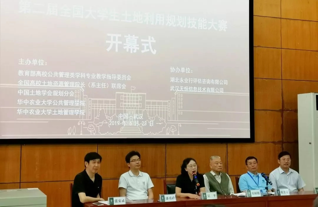 本次大赛由华中农业大学公共管理学院、土地管理学院主办,湖北永业行评估咨询有限公司(以下简称“永业行”)等单位协办。华中农业大学公共管理学院院长张安录主持开幕式。华中农业大学副校长吴平、土地资源管理专业创始人韩桐魁先生,教育部高校公共管理类学科专业教学指导委员会副主任欧名豪分别致辞。