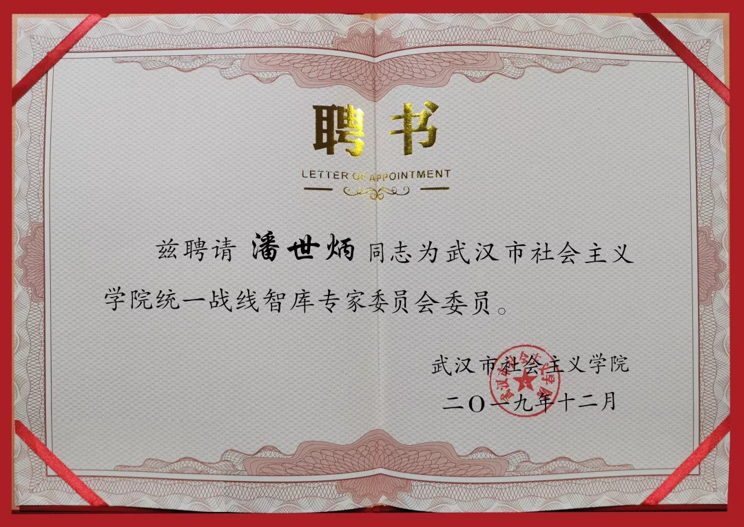 永业行潘世炳入选武汉市社会主义学院统一战线智库