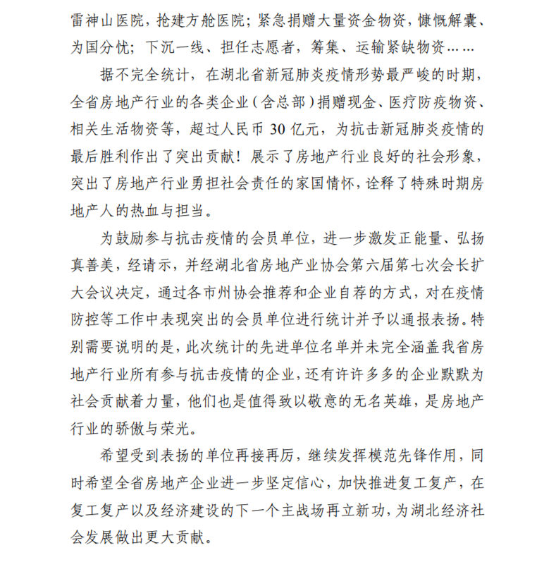 6月5日,湖北省房地产业协会发布通报,对全省房地产行业各类企业作出的突出贡献予以表彰,永业行获评抗击疫情先进单位。