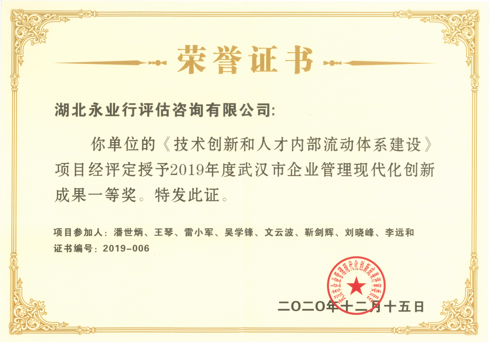 永业行荣获“2019年度武汉市企业管理现代化创新成果一等奖”
