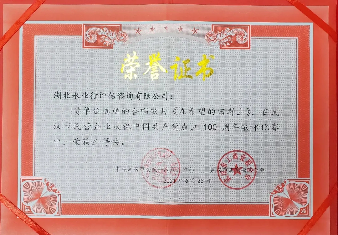 永业行合唱团荣获“武汉市民营企业庆祝中国共产党成立100周年歌唱比赛”三等奖