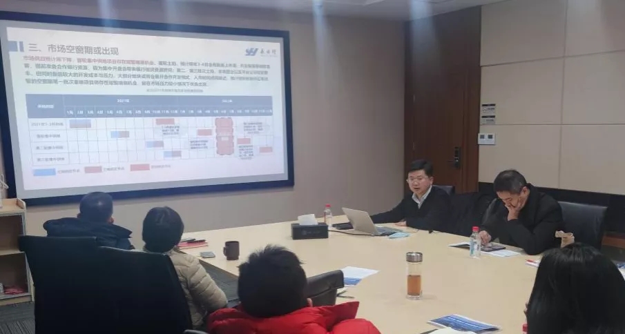 2022年1月25日上午,应武汉立城建设发展有限公司(以下简称“立城公司”)邀请,永业行副总裁雷小军就第三批“双集中”供地政策及市场研究进行培训交流。立城公司总经理叶军主持会议。