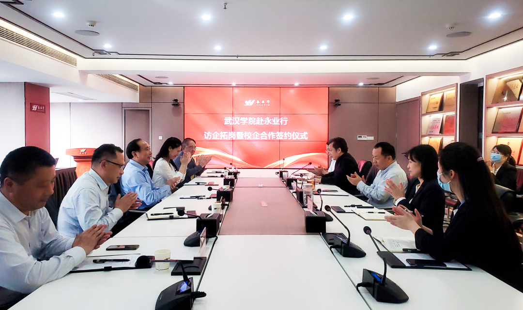 2022年5月17日下午,永业行与武汉学院举行校企合作签约仪式,双方就人才培养、项目合作、产学研融合等校企合作事宜进行了交流和沟通。武汉学院副校长周承早,永业行党委书记、董事长潘世炳等出席仪式。